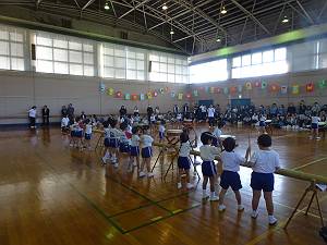 令和7年度運動会 全園児 少し肌寒さを感じる23日(木)、志方体育館をお借りして、運動会を行いました。 0歳児のお友達は、初めての環境に戸惑い泣く姿もありましたが、競技が始まると、どのクラスもやる気に満ちていました。 平日の開催にもかかわらず、たくさんの保護者の方に参加いただき、たくさんの拍手や笑顔を園児に贈って下さりありがとうございました。 ・もうすぐ始まる ・たくさんのお客さん ・0歳児かけっこ ・感動の5歳児リレー・一生懸命!2歳児競技 ・ばっちり決めたぜ組体操 |