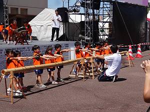 令和7年9月6日(土) 楽市に出演してきました みどり組&もも組 残暑厳しく、立っているだけで気が遠くなりそうな日。加古川市民会館前広場で行われた「楽市」に「ゆき太鼓」で参加してきました。 最初は緊張気味だった園児たちもステージに上がると、日頃の練習の成果を存分に発揮し、最後のポーズは圧巻でした。楽屋に着いた時の表情は、やり切った嬉しさで満ちていました。 非常に暑い日、また、お忙しい中、園児の出演にご協力下さり、ありがとうございました。 |