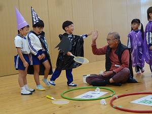 志公大学2年生の方との交流会 5歳児(もも組) 28日(火)志公大学の生徒の皆様が、5歳児園児の為に沢山のゲームを持って来園し、一緒に遊んでくださいました。ハロウィンが近かったこともあり、園児は仮装でお出迎えし、そのままゲーム、折り紙、ハモニカ演奏に参加しました。大学の生徒さんのリードで、笑顔いっぱいの楽しい時間になりました。 志公大学の皆さん、公民館の職員の方々、ありがとうございました。 ![]() ・こうのとりの折り紙 ・学生さんによるハモニカ演奏 ![]() ・お礼に私達からもハモニカ演奏をプレゼント |