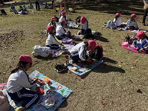 11月19日(木) 遠足 全園児 まっしろ、しろ、あか組は、普段の散歩で歩く道のりを少しだけ延伸させて歩いたのち、園庭で遊び、お家の方に作って頂いたお弁当を頂きました。 き、みどり、もも組は、日岡山公園に行き、園周辺では収集できない大きなまつぼっくりや、赤く色づいたポプラの葉、大きくて丸いドングリなどを目を輝かせて拾い、製作時間に作った収集バックいっぱいに詰め込んでいました。 また、日岡山公園にあるロング滑り台に挑戦したり、ジャングルジムやシーソー等、珍しい遊具に次々に挑戦していました。お昼に、お家の方に作ってもらったお弁当を見せ合いながら、会話も弾み、普段以上に楽しい昼食時間となりました。 |