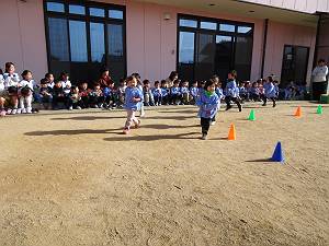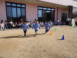 1月21日(水) マラソン大会 全園児 外気は冷たいけれど快晴の日、全園児が参加して「マラソン大会」を開催しました。 0歳児は園庭を縦断、1歳児は園庭を自由にぐるぐる2周、2歳児はコーンを置いて外周を3周。3歳児からは、急なアップダウンあり、コーナーあり、溝ありの園の外周難コースを走ります。、3歳児は約600メートル、4歳児は1,000メートル、5歳児は1,500メートをル走り切りました。ゴール時にもらった順位カードを、数字が何であろうと誇らしげに見せてくれる姿がありました。順位に納得できても出来なくても、今の自分を受け入れ、ゴールした瞬間から次なる成長が始まっていました。 *走るって楽しい♪ 0歳児 1歳児 2歳児 *マラソンは自分との闘い⚔ 3歳児 4歳児 5歳児 |