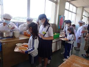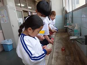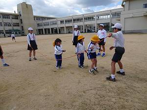 | 11月6日(木) 志方小学校交流会 もも組 志方小学校5年生との交流も2回目。前回と同じグループなので、顔見知りになっている分打ち解けるのも早く、スタートから和やかな雰囲気でした。園児にとっては初めての給食体験も、とても丁寧に説明してくれる5年生に安心している様子がうかがえました。 美味しい給食を頂いた後は、広い校庭で縄跳びをしたり、園にはない大きな遊具に挑戦しました。遊び方を教えてもらい、お兄さんお姉さんと遊んでもらえて、楽しい時間を過ごすことが出来ました。 |