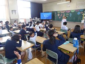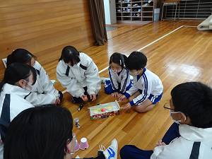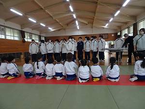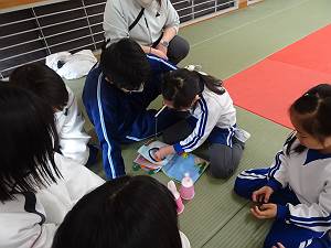 | 11月18日(木) 志方中学校3年瀬戸の交流会 もも組 大きい!が第一印象でした。やっと実現した中学生との交流会。小グループに分かれ、3年生が夏休み期間に家庭科の宿題で製作された玩具や絵本を、使い方を教えてもらいながら遊ばせてもらって、楽しい時間を過ごす事が出来ました。 最後に中学生から合唱コンクールで発表した曲の生歌を聞かせていただきました。澄んだ歌声とハーモニーの美しさに聞き入り、うっとりとするもも組のお友達でした。 |