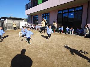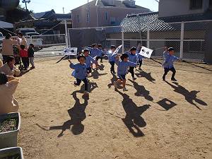 12月18日(木) 凧揚げ大会 全園児 日差しが温かく、風も優しく吹いている、絶好の凧揚げ日和。園児たちがそれぞれ工夫し、思い思いの絵を描いた自慢の手作りの凧、その凧を揚げる日がやってきました。どちら向きに走ったら良いか、どうすれば揚がるのかなどを、楽しく経験することが出来、揚がった際には「せんせい!みて!あがった!」と満面の笑みを見せてくれました。 中には、走ることに一生懸命で、「せんせい!あがっとる?」と聞いてくる姿もあり、ほほえましく思いました。 0歳児 1歳児 2歳児 2歳児 4歳児 5歳児 |