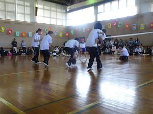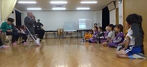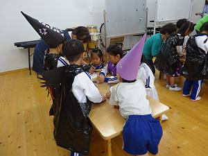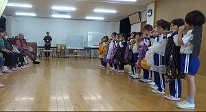 志公大学2年生の方との交流会 5歳児(もも組) 28日(火)志公大学の生徒の皆様が、5歳児園児の為に沢山のゲームを持って来園し、一緒に遊んでくださいました。ハロウィンが近かったこともあり、園児は仮装でお出迎えし、そのままゲーム、折り紙、ハモニカ演奏に参加しました。大学の生徒さんのリードで、笑顔いっぱいの楽しい時間になりました。 志公大学の皆さん、公民館の職員の方々、ありがとうございました。 ![]() ・こうのとりの折り紙 ・学生さんによるハモニカ演奏 ![]() ・お礼に私達からもハモニカ演奏をプレゼント |